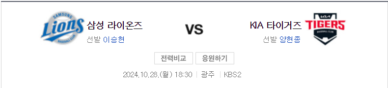 2024년 10월 28일, 일요일 오후 8시30분에 광주 기아 챔피언스필드에서 열립니다.