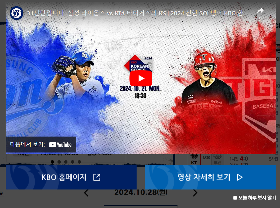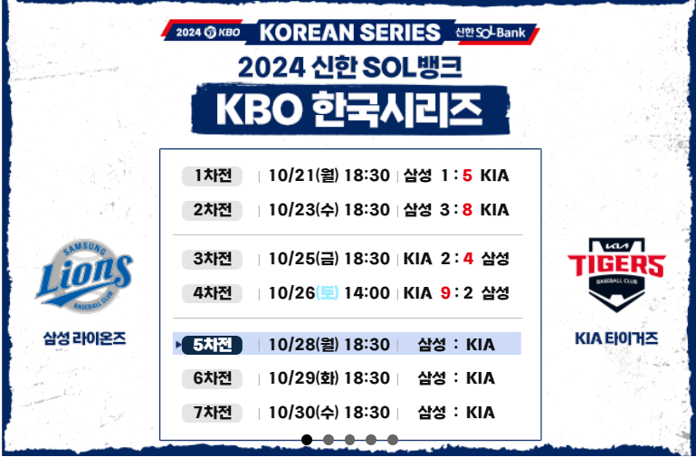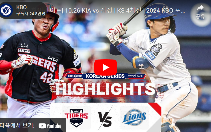 5차전은 KBS에서 무료 생중계 됩니다. 기아와 삼성의 운명을 가를 5차전 꼭 놓치지 말고 보세요.
