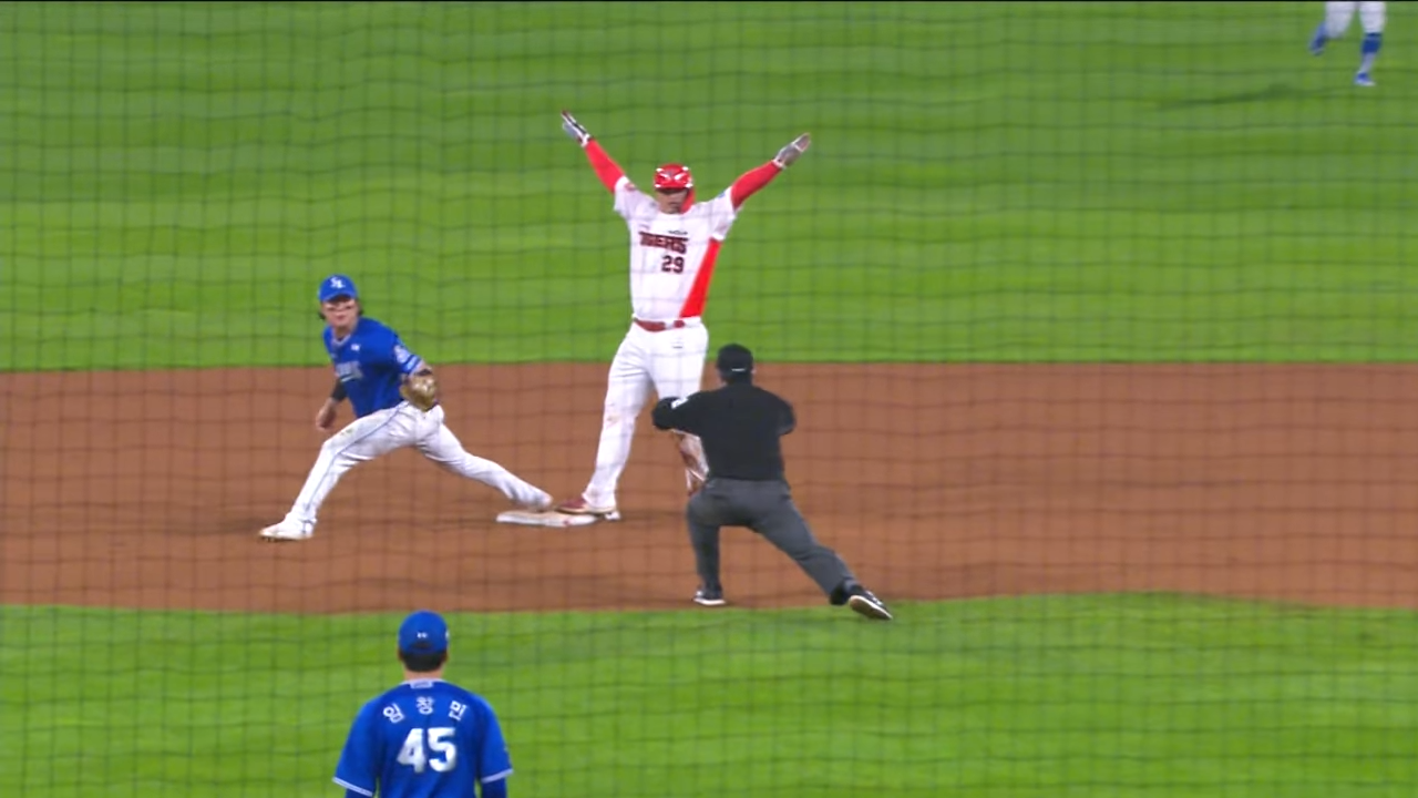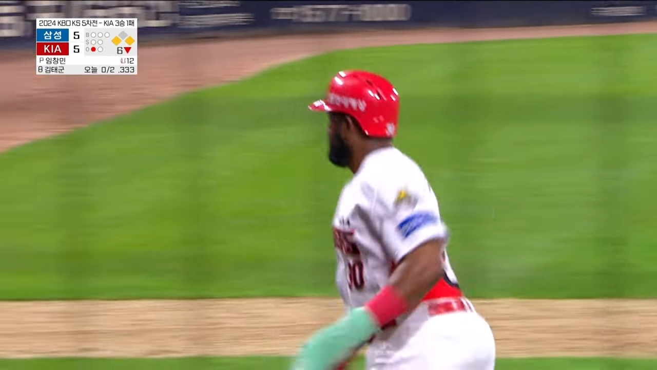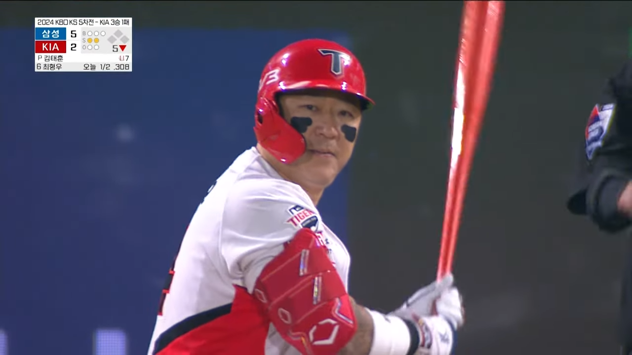 기아의 최형우는 4회 말 중요한 순간에 홈런을 날리며 경기의 흐름을 완전히 뒤집었습니다.