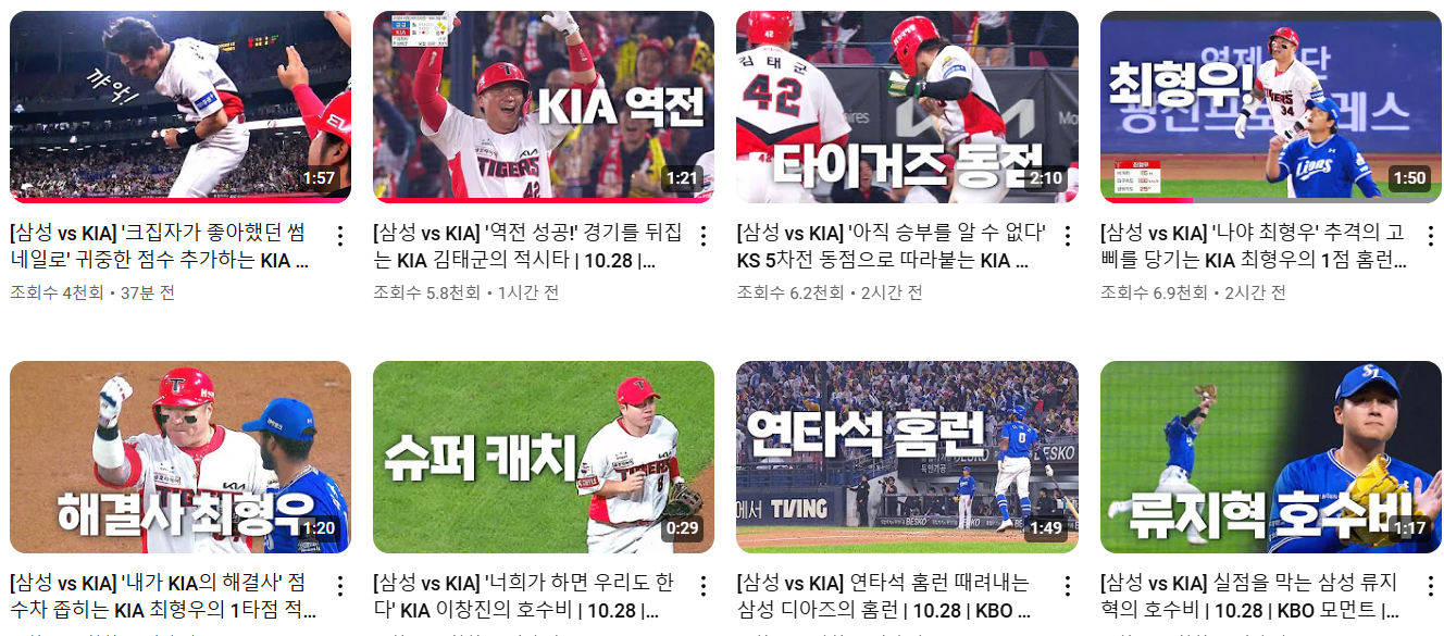 - : KBO 공식 유튜브 : 실시간 중계 및 주요 장면 다시 보기 제공.