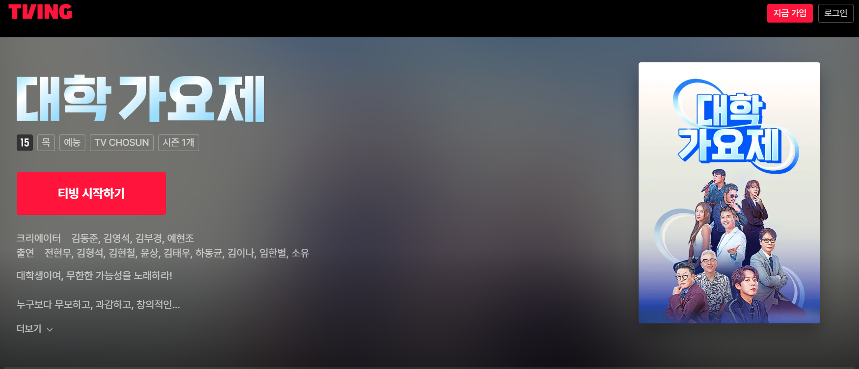 TV조선 대학가요제는 티빙(TVING)에서 다시보기가 가능합니다.
