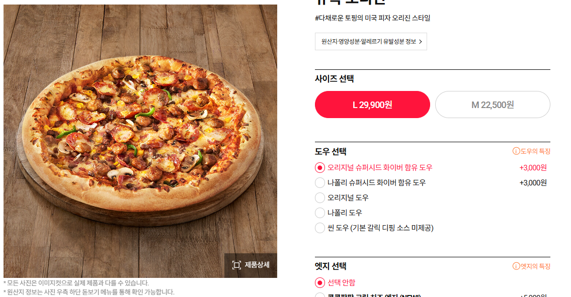 - 특징: 감자의 부드러운 식감이 돋보이는 도미노피자의 대표 메뉴로, 남녀노소 누구나 좋아하는 피자입니다.