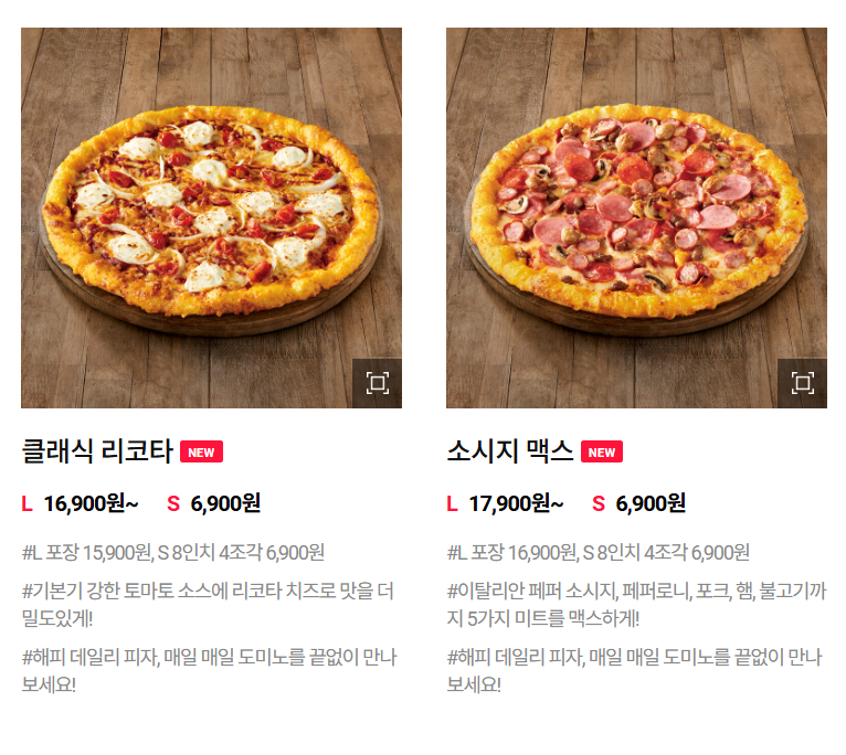 도미노 피자는 풍성하고 다양한 메뉴를 제공하며, 최근 새롭게 추가된 메뉴들이 입점해 많은 고객의 사랑을 받고 있습니다.
