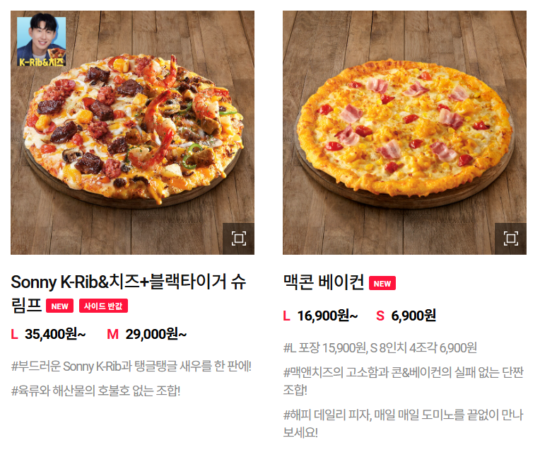 - 사이드 반값 할인: 특정 프리미엄 피자(Sonny K-Rib & 치즈, 와일드 와일드 웨스트 스테이크, 블랙타이거 슈림프) 구매 시 사이드 메뉴를 반값에 즐길 수 있습니다.