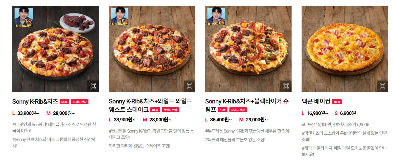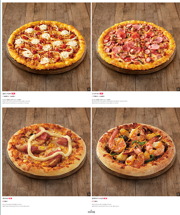 - 도미노피자 웹사이트 또는 앱에서 프리미엄 라지 피자(L)와 콜라 1.25L를 선택합니다.