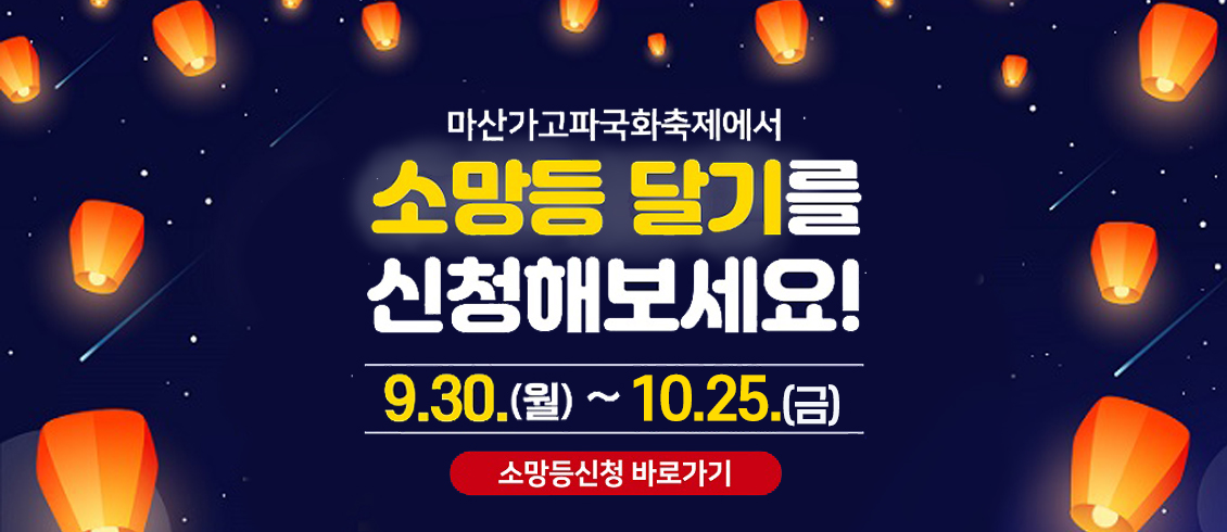 마산가고파국화축제에서 특별한 소망을 담은 소망등 달기를 신청▶▶해보세요!