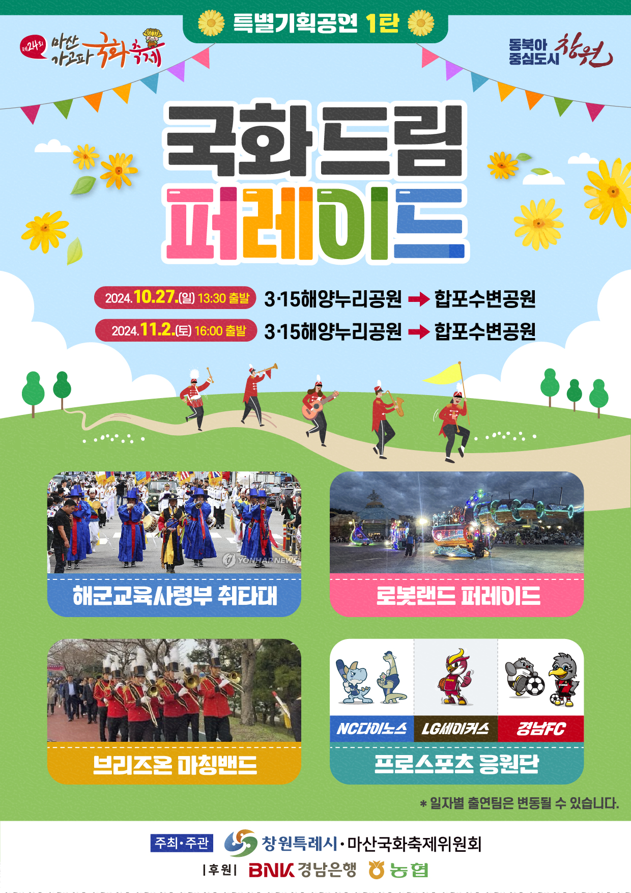 - 국화 드림퍼레이드: 해군 취타대, 로봇랜드, 마칭 밴드의 행진 퍼포먼스