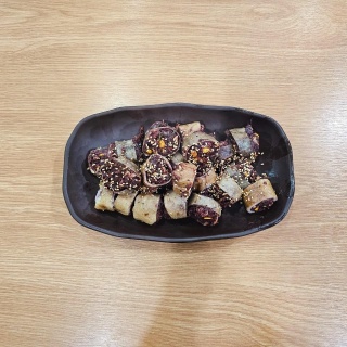 - "대통에 담긴 암뽕순대 비주얼에 반하고, 식감에 또 반했습니다."
