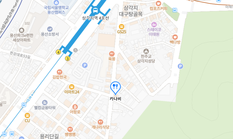 📍 서울 용산구 한강로1가 216-18 4층에 위치한 카나비입니다.