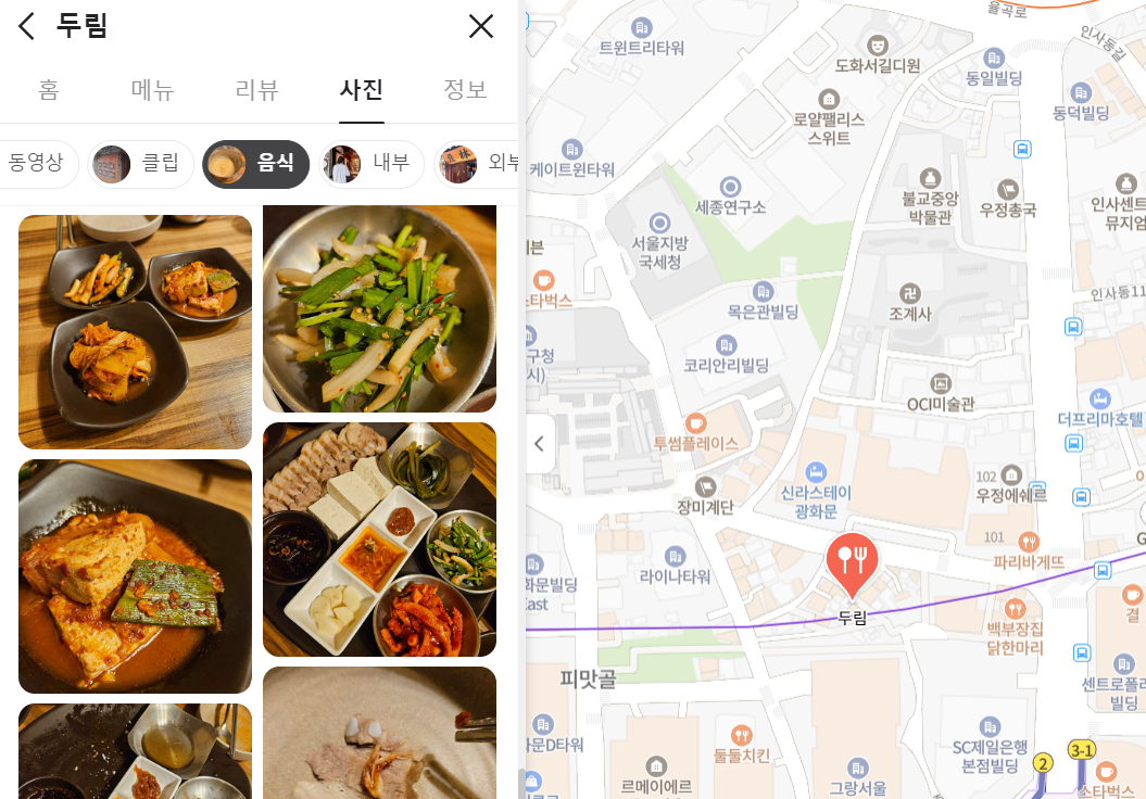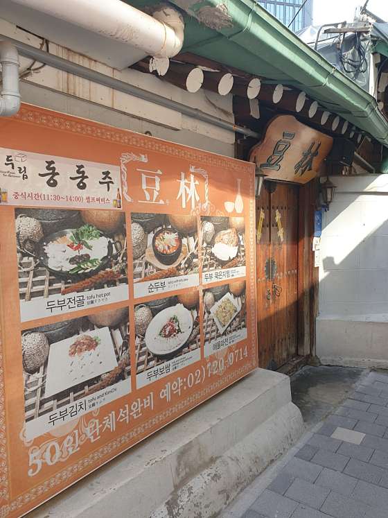 이곳은 종로에 위치한 '두림'이라는 맛집으로, 두부보쌈과 함께 다양한 한식 메뉴를 선보이고 있습니다.