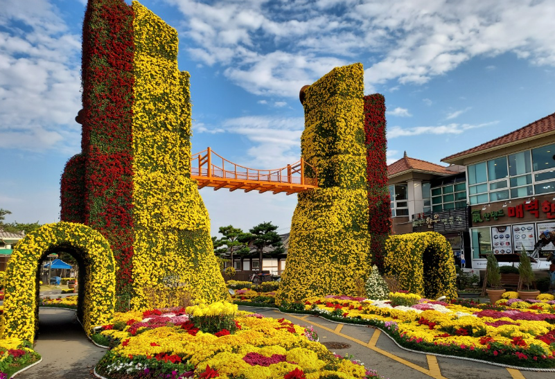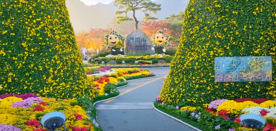 국화로 꾸며진 아름다운 조형물들과 함께 월출산의 가을 정취를 느낄 수 있습니다.