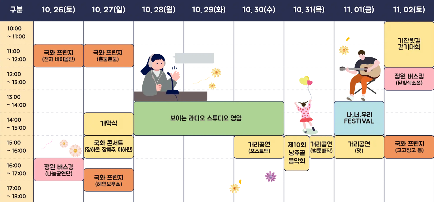 2024년에도 더욱 풍성한 프로그램이 준비되어 있으니, 아래에서 일정을 미리 확인하시고 멋진 가을 축제를 놓치지 마세요!