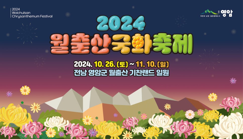 2024년 월출산 국화축제가 전남 영암에서 화려하게 펼쳐집니다. 특히, 이번 축제에서는 인기 가수들의 특별한 공연도 진행될 예정이니, 놓치지 말고 참여해보세요! 기간: 2024.10.26(토) ~ 11.2 (일)