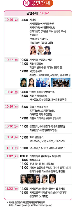 - 14:00: 치유 힐링캠프, 학생밴드 공연