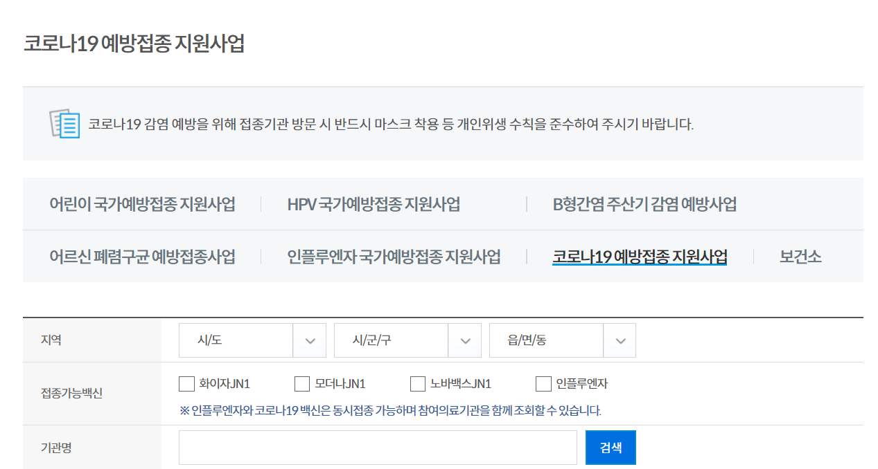 코로나19 백신 접종이 가능한 병원이나 보건소를 찾으려면