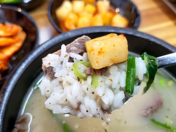 특히 17시간 동안 국내산 사골을 푹 고아낸 깊고 진한 국물이 이 집의 핵심 비법입니다.