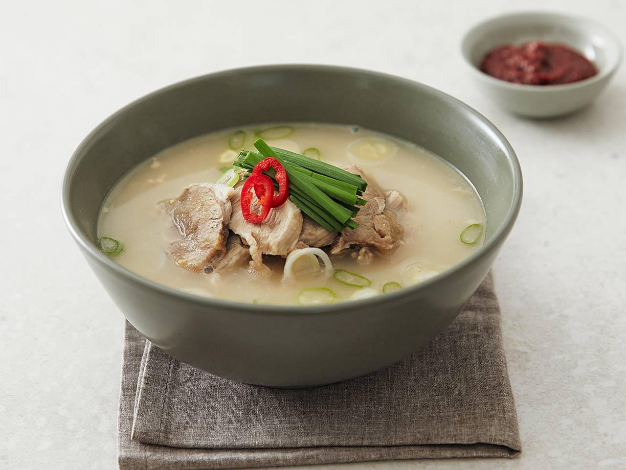 - 17시간 동안 국내산 사골을 직접 우려낸 깊은 국물