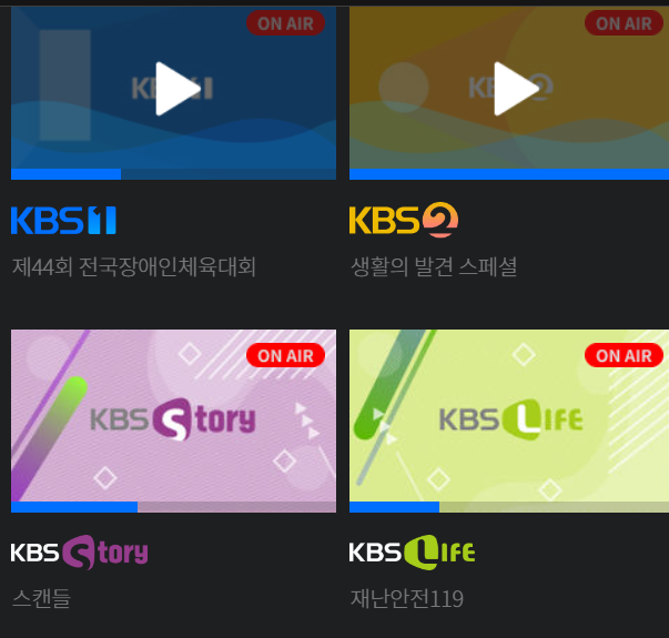 KBS 온에어 공식홈페이지는 실시간 방영중인 드라마, 예능 이외에서 정주행 프로그램도 있어